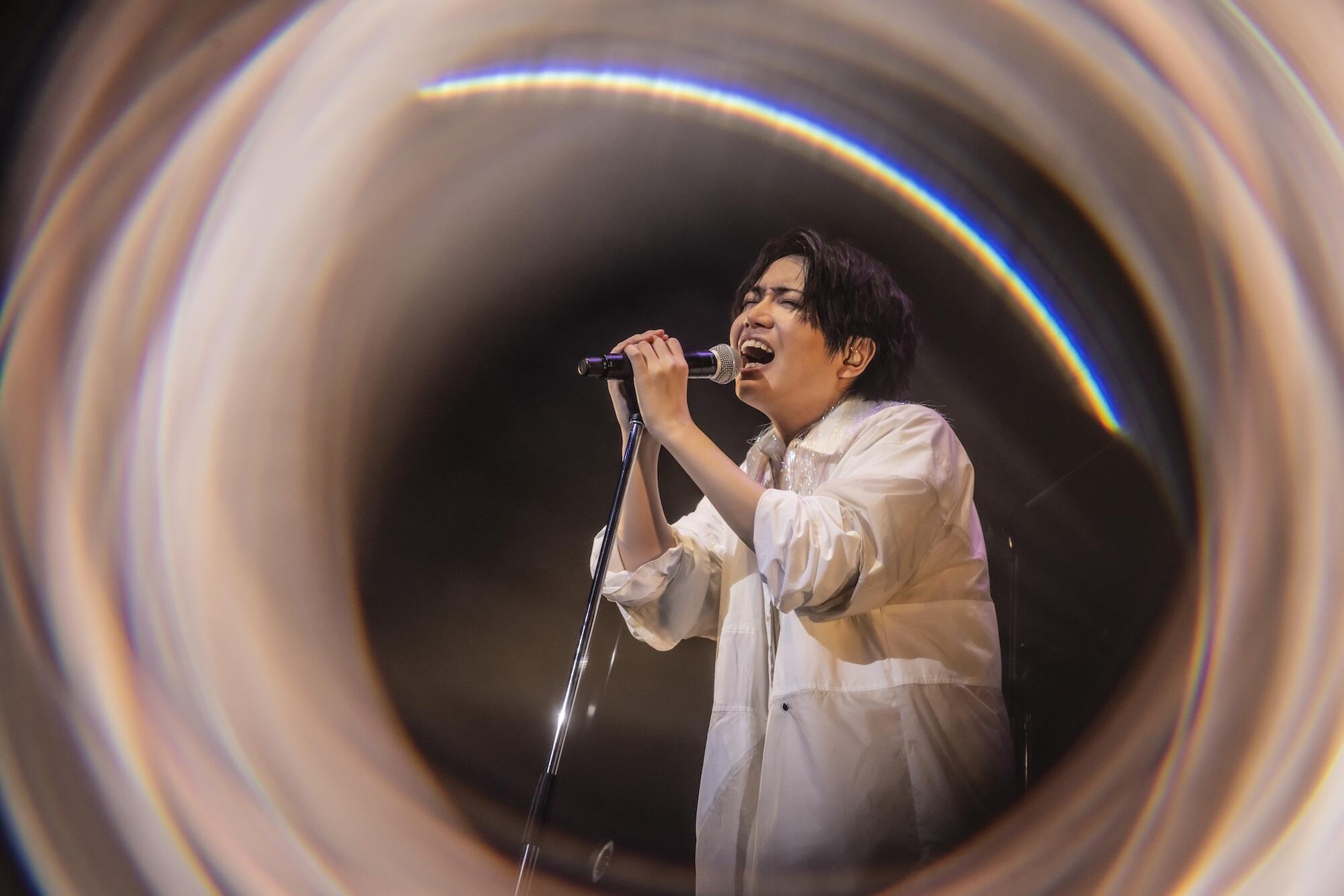 今日のライブは僕の人生、これまでとこれからを感じてもらえるようなライブにしたいと思って創りました。ソロデビューさせていただいた時の気持ちも遺さず、先に連れて行く為に、曲として聴いていただこうと思っております。葛藤も感じてもらいながら、皆さん自身の後ろ向きになってしまう感情を、棄てずに連れて行く為に、聴いていただきたいと思います」