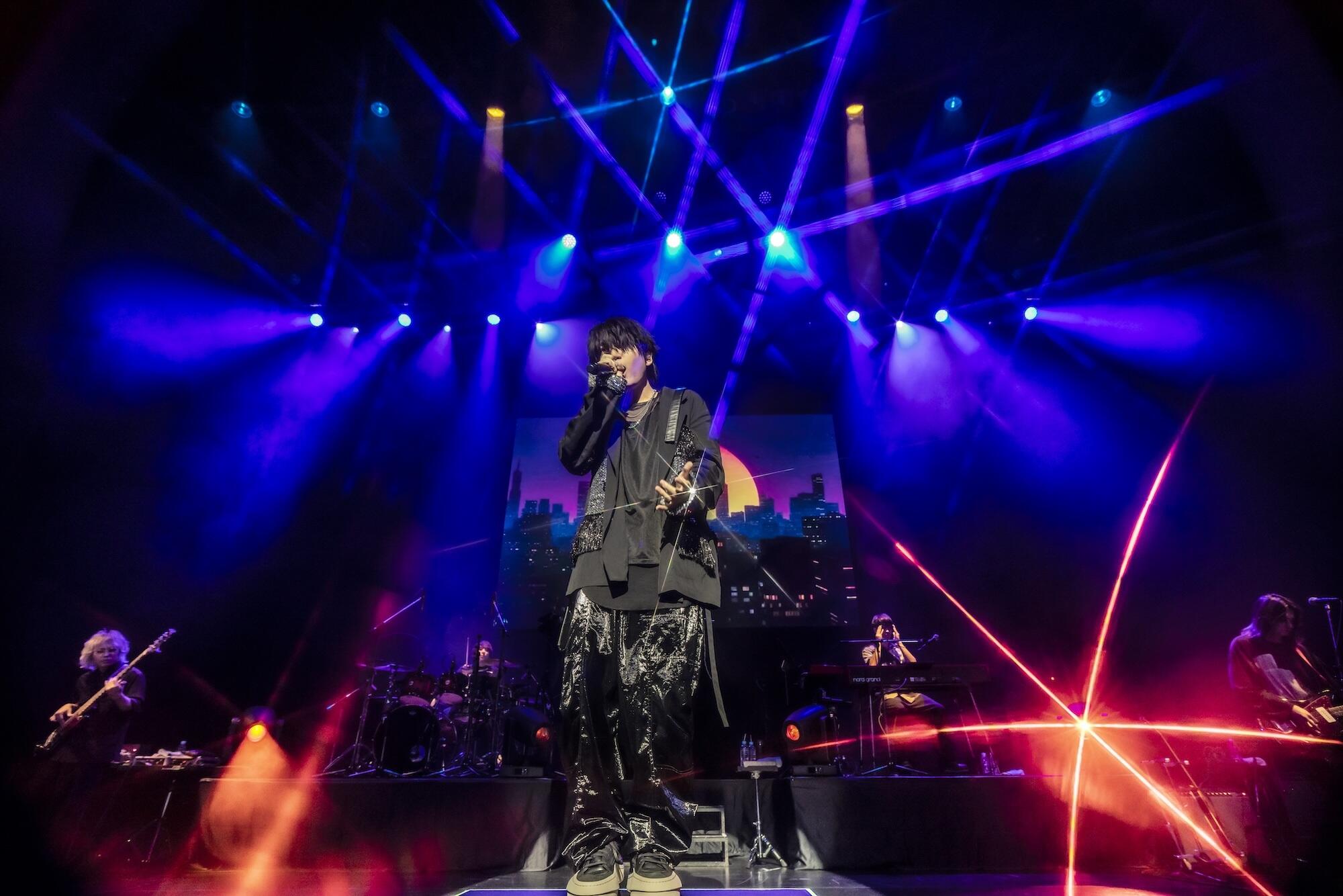 と海中から沸き上がる生命力を思わせるグラフィックをバックに『Liar Game』へ。ダンサブルなメロディに「明日の自分を少し好きになれるように」「足りないページを探せずに立ち止まるなら ほんの少しの嘘を書き足したっていい」とメッセージを乗せる。暗転し暖色のスポットライトに照らされ『You/Me』。Elements Garden・藤永龍太郎による雄大なメロディに自ら作詞を手がけた「産み出されるのは型落ちのmy world」「薄闇に覆われた夜空を流れるメロディ 足元で色褪せないように 願いをかける」という痛切なメッセージを紡ぐ。一転して青く染まったステージでアップテンポな『I'll be』で「探していた 変われる時を」「何もないこの手だから なんにでもなれる」「何度でも言うよ 悲しい言葉の意味を塗り替えて」「独りじゃない世界は輝いてく」とポジティブな言葉を伝え、マイクを突き出し「wow wow」のコールで会場は一体になる。