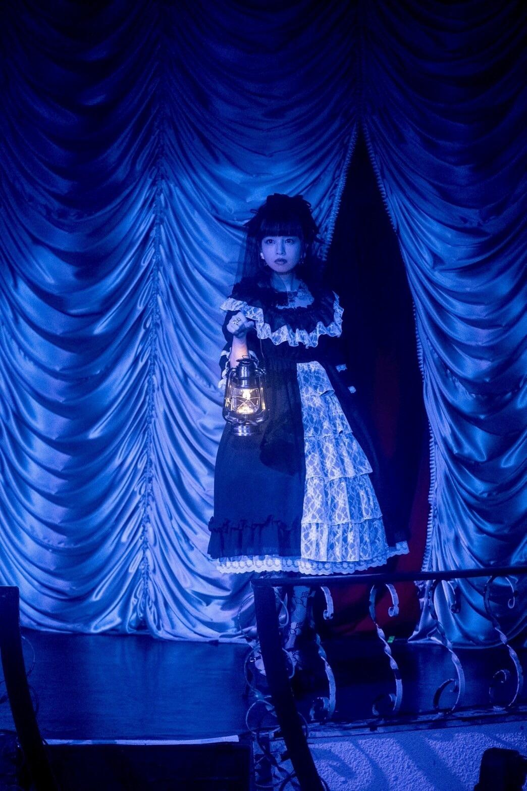 場内暗転し、バンドメンバーが登場。それぞれが手にした花を卓上の花瓶に挿していく、『raison d'etre』の歌詞とシンクロする演出でスタンバイ。サブステージに「ALICE and the PIRATES」のゴシックなワンピースに身を包んだ春奈るなが仄かに灯るランプを手に登場し開演。スクリーンに投影された森の中とシンクロして階段を降りる春奈るなが、『煌く星の病』の歌詞から「ぼくは森へ 魔法の城を探しに行った。」「やっと見つけた、その場所で」とアカペラを響かせると、スクリーンで門が解錠音と共に開いてライトオン。紫のスポットライトに照らされ、尾澤拓実とタッグを組んだ3作連続リリース楽曲の2曲目である『幽幻廻廊』へ。るな充のペンライト「LUNAブレード」が灯す緑色に染まった客席へ向け、荘厳なメロディで「私はどこにいく? 教えて、どうか 嗚呼…」と魂の彷徨を表現する。