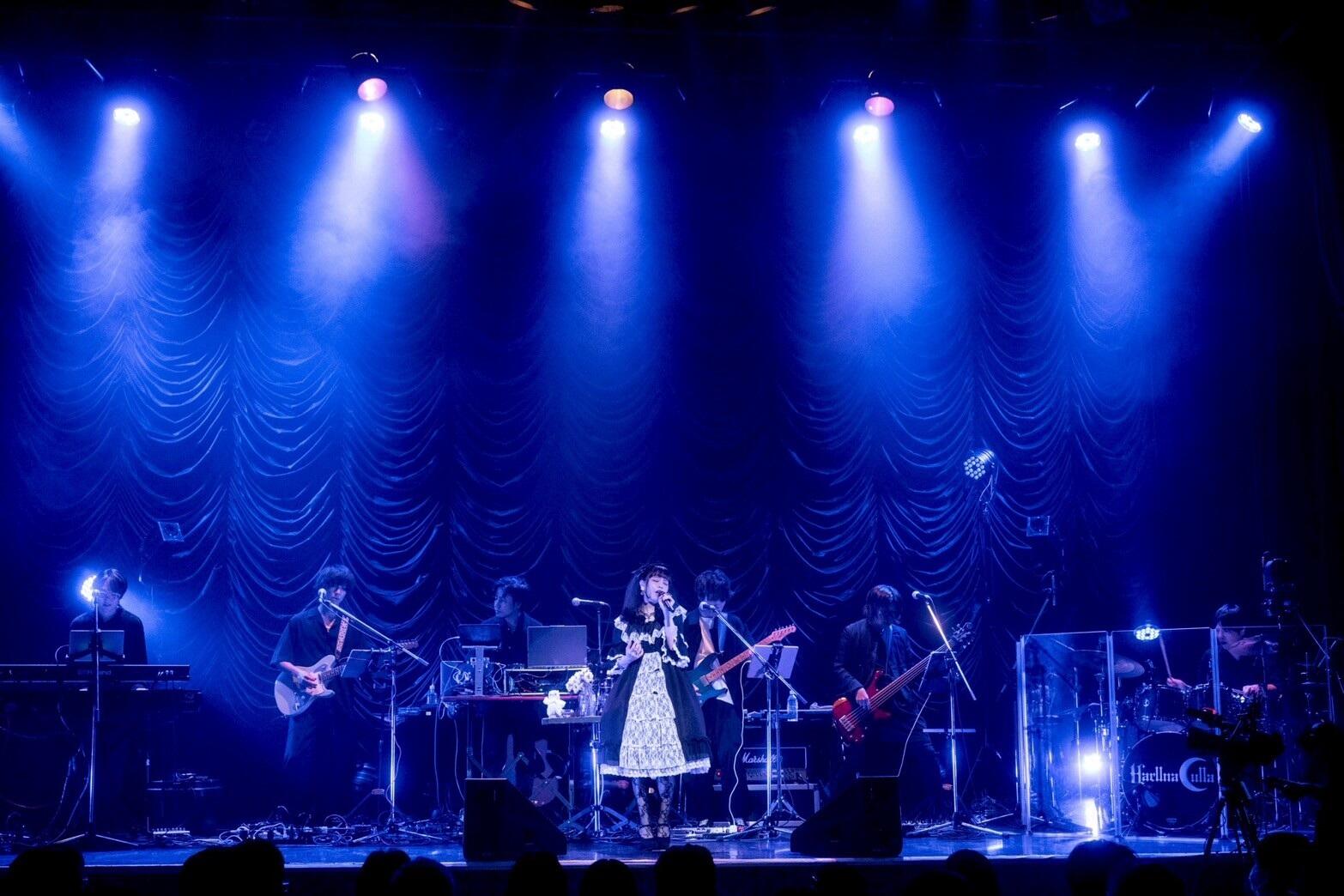 とコールを引き出し満面の笑みで場内へ見渡す。「ラッタッタ」という軽快でレトロモダンなフレーズから、3作連続リリースのトップを飾った『鏡面の彗星』へ。挑発的な視線で、「赦されない 味方しない 邪魔しないでわたし」「生まれ変わるアイと世界」「うたわれない愛とユメ 壊して」とアーティスト春奈るな新章開幕となったゴシックな世界感を唄い紡ぐ。オルゴールと共に不穏なナレーションから『煌く星の病』へ。OPでのアカペラから一転、アップテンポなメロディで「ぼくはきみを助けると誓う。」と熱唱、「“ふかいもりのおくにあるおしろには、ぼくの、しるした、しんじつ、が、ねむる”」と静かに締める。アニソンアーティスト・春奈るな始まりの楽曲、梶浦由記による『空は高く風は歌う』では、マニピュレーター・タルタノリキもギターを手にし、雄大なメロディに乗せ「いつも何よりも眩しい正しさで 叶わない明日へと人を裁く」「空は高く風は歌う 貴方が見た夢の記憶 その叫びが 優しい木霊を 返しているよ」とロングトーンを場内へ染み込ませる。