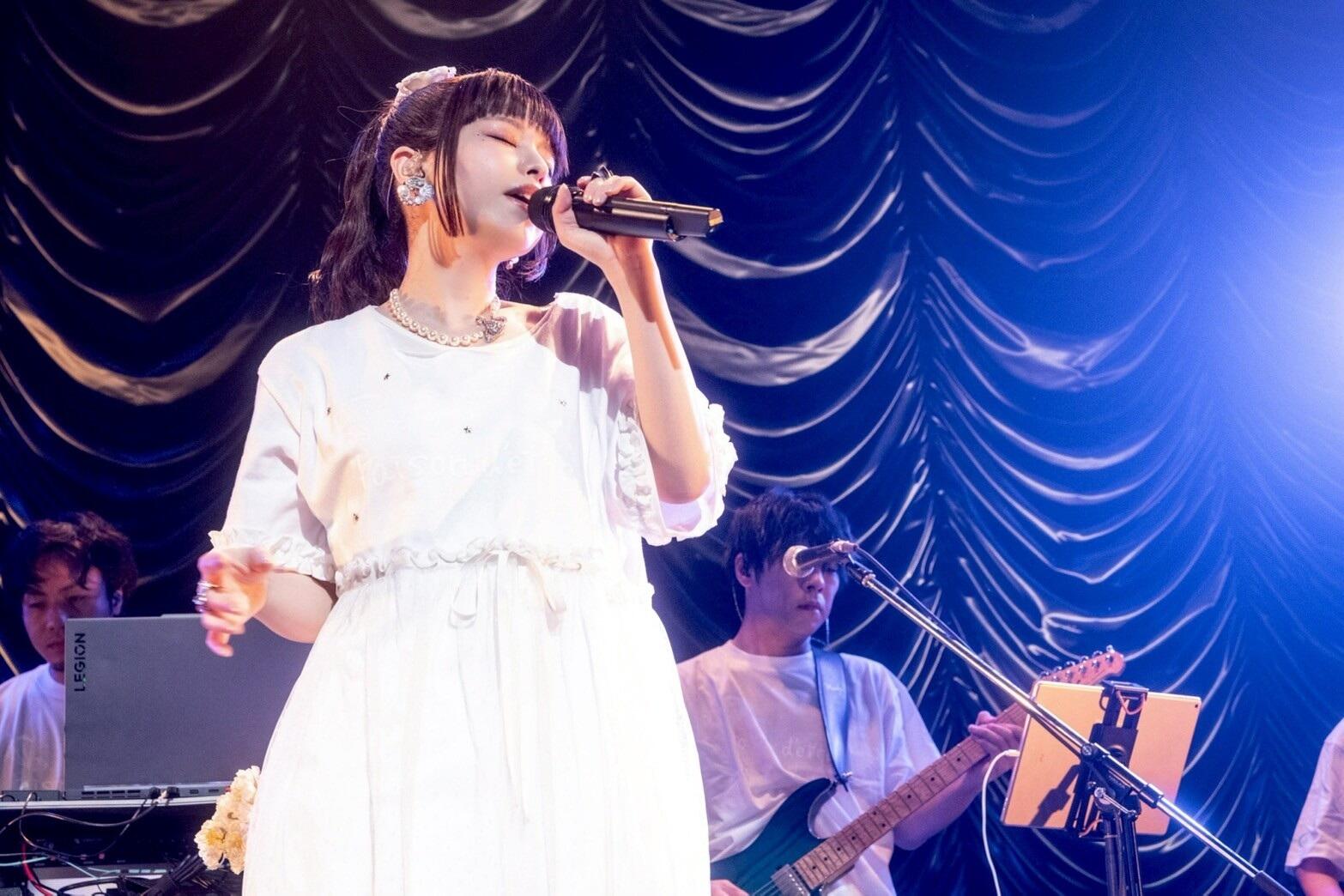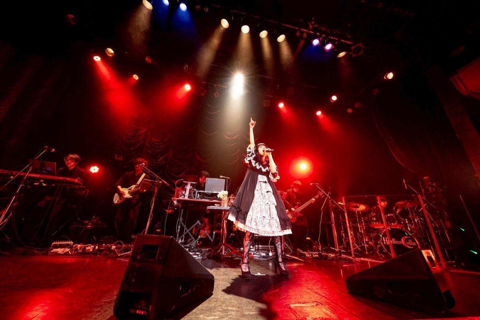 と、コールを扇動し、プレデビュー曲『微熱の月』へ。デビュー直前に音楽雑誌の付録として収録された楽曲が、アンコール1曲目として象徴的に響く。大塚利恵の手による「愛しい人に触れたら 何もかも道しるべ」「どんな未来へ通じる夢だとしても 迷いはしない」という情熱的な詞を迸らせる。