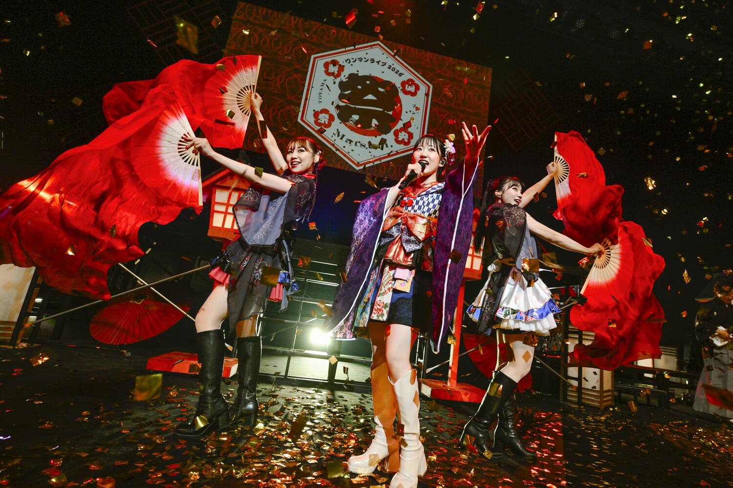 「最後は祭ライブにふさわしい、あの曲しかありません!」と東山が叫んではじまったのは、大石昌良が手がけたカオスなロックナンバー「とおりゃんせ」。転調あり、ラップパートあり、コール&レスポンスありと、まさにドンチャン騒ぎ。金の紙吹雪が舞うなか、ドドンと障子に潔く「終幕」の筆文字が踊る、なんとも粋な演出で本編は終了した。