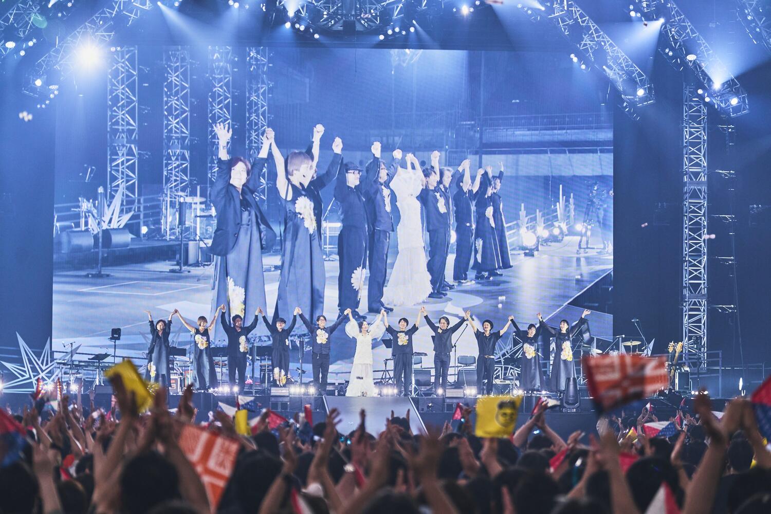 最後の「シンガーソングライター」では花道で歌い、アリーナの真ん中で旗を振りながら〈楽しいばかりじゃないから楽しい 生きることは音楽〉と堂々と歌い上げた。そして最後、ステージ上の佐野(Drums)にアイコンタクトを送ると、息ぴったりにバンドは曲を締め括った。目に映る全ての光景と音が幸せに満ちていて、まるでドキュメント映画を観ているような美しさだった。その主人公である坂本真綾は客席を見渡して優しい笑顔を見せ、何度もお辞儀をして「また会いましょう!」とステージを去った。