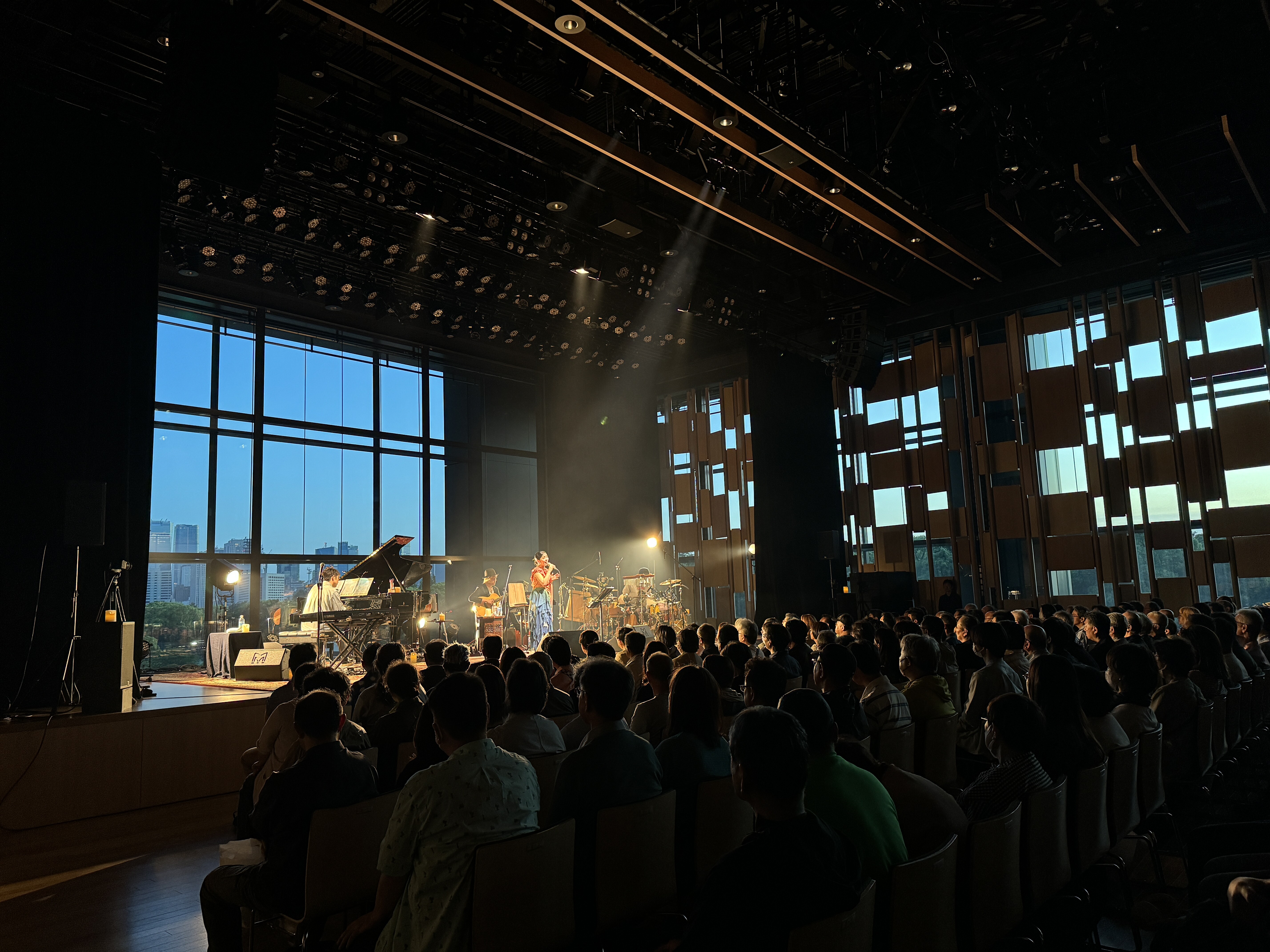 楽しかったツアーの思い出話しとともに、バンマス扇谷研人作曲の『青く晴れたら』や自身が作詞作曲をした『遠い約束』『一輪の花』を披露。