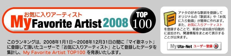 ●2位は、2007年1位だったBUMP OF CHICKEN。「あんまり他の人がしない様な表現が好き。“あぁ、こういう見方も出来るんだ…”って。」(悠さん/15歳/女性)、「その時の自分の状況によって歌詞の中に新しい意味を発見できたりすることがあって、深い。聞けば聞くほど味が出る」(まこっちゃんさん/20歳/男性)など、歌詞に対する絶賛の声が多くを占めた。
