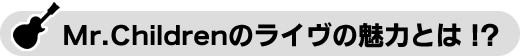 ここで改めて、Mr.Childrenのライヴの魅力について書いてみる。まず、ライヴといえど、彼らが作品主義であることは変らない。ただ盛り上がれば、というだけに終わらない、見終わったあと、心の中に残る何か…、家に戻るまで消えない何かが、きっとある。メッセージ、という言葉を使うと重たくなるけど、「さぁ明日も頑張ろう」という、そんな勇気を与えてくれるのがこのバンドのライヴなのだ。