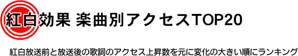 【紅白効果 楽曲別アクセスTOP20】TOP20内にランクインしている楽曲のうち、16曲は2018年のリリース楽曲であることにも注目です。桑田×ユーミンの強烈なフィナーレ含め、誰もが知っている名曲歌唱ステージの数々は圧倒的でした。しかし一方で、新時代の歌詞たちが確実にアクセス数を上昇させております。