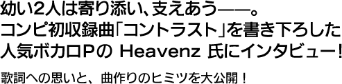 「POP★sTAR」なので、爽やかでちょっと切ないポップス作らせて頂きました!足りない物を互いに補って生きてく少年少女は、どこまでも素敵な世界を描けると思います。(Heavenz)