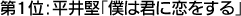 1位は、『僕の初恋をキミに捧ぐ』から平井堅の「僕は君に恋をする」、2位には『カイジ 人生逆転ゲーム』からYUIの「It's all too much」と最新の全国上映系ヒット作の主題歌が並んだ。(4位には、同映画劇中歌「Never say die」もランクイン。)前者は、幼なじみの男女が主人公の純愛モノ、後者は青年が命懸けでギャンブルに挑むサバイバルもので、ストーリー面においてはヒットの方程式はないようだ。