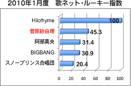 4位、6位、9位、12位、14位の5つがドラマタイアップ曲で、歌詞検索への影響力の強さが色濃く出ている。このうちmonobright「