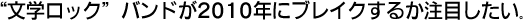 それにしても、15曲中13曲が何らかのタイアップ曲で、ノンタイアップはBUMP OF CHICKENの2曲のみ。BUMPがどんな楽曲でも高い注目を集めていると同時に、その反面、ノンタイアップのバンド楽曲は、なかなか一般的には伝わりづらいということが分かる。それは、前述のようにバンドの場合は総合的なアーティスト・パワーで判断されることが多いこともあろうが、05年のサンボマスター、06年のRADWIMPS以降、「歌詞がすごい」と言われるバンドがブレイクしていない事とも関係していそうだ。その意味で、このぽっかりと空いた"文学ロック"バンドが2010年にブレイクするか注目したい。