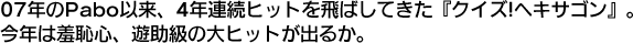 5位のサーターアンダギーは、『クイズ!ヘキサゴン』発のユニット。07年のPabo以来、4年連続ヒットを飛ばしてきた同番組だが、今年は羞恥心、遊助級の大ヒットが出るか。新顔では、19位に映画や舞台でも活躍するR&Bシンガー松下優也がランクイン。本作のヒットは人気アニメ『デュラララ!!』主題歌による所が大きいが、日本では数少ない"歌って踊れる"男性アーティストなので、今後も注目したい。