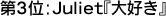 バンド以外の5人以下ユニットは、Juliet、ソナーポケット、コブクロ、GReeeeNのみ。特に、Julietはこの4組中で唯一10万枚ヒットがないグループ、かつ唯一の女性グループ、しかも世間的に冷たくあしらわれがちなギャル系で、尚更に頑張っているように思えた。