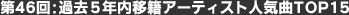 表を見てみると、ももクロやソナポケをはじめ、ユニバーサルミュージックのアーティストが非常に多いことに気付く。ユニバーサルと言えば、徳永英明やDREAMS COME TUREなど移籍後に大ヒットを飛ばしたベテランが多く、またメジャーに復活したナオト・インティライミがTOPアーティストになるなど、復活のイメージがあるが、意外と若手の移籍(そしてその後他社での成功)も多いようだ。ももクロが移籍したのは、2010年で折しも同社がKARAや少女時代などK-POPアーティストを次々と大ヒットさせていった時期で、アイドルブームはまだ本格化していなかった。また、ソナポケも同社で「Promise」を2008年に配信ヒットさせていたが、00年後半は青山テルマ、GReeeeN、ヒルクライムなど同社ではメガトン級の配信ヒットが続出した為、彼らは今ひとつ脚光を浴びなかったのかもしれない。BMG(当時)からユニバーサルに移籍して「Story」など代表曲をヒットさせた後、EMIに移籍して「ハピネス」などよりメッセージ性を際立たせ再ブレイクしたAIが、会社の合併でユニバーサルの出戻り(微笑)となったが、今後、最初の移籍時のようなヒットを飛ばすのかにも注目したい。