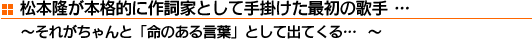 そうですね…、松本さんが、本当に全身全霊で歌詞を手掛けてくれた最初の歌手が、太田裕美じゃないですか。それこそ、本当に心を削って書いてくれているような詞が、ものすごく多いと思います。