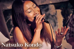 シンガーであり、また作詞家でもある近藤ナツコは、幼少より日本の歌謡曲、ポップスを聴く一方で、黒人音楽(Motown, Soul, R&B)に影響を受けて、音楽活動を開始、1993年5月I.WハーパーCMソングでプレデビュー、同11月「さんまのまんま」エンディングテーマでデビュー。その後、Double Voice、熱の花、FUNKの会、ギタリスト石井完治氏との DUO等、ジャンルの枠を超えて多くのミュージシャンとコラボしながら、近年は、ニューヨークに足を運び、セッション、オープンマイクに積極的に参加。すっと心のどこかに溶けていく声が、言葉を紡ぎ、伝えていく。柔らかく、時には力強く、オリジナルの音楽世界を広げている。作詞家としては、ジャニーズアーティスト、声優、アニメ、舞台に詞を提供。