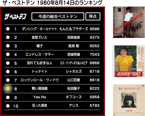 このコーナーでは、当時のランキングやエピソードと共に、「ザ・ベストテン」に出演した歌手のヒット曲を紹介していきます。第46回は1980年8月14日のランキングを紹介。