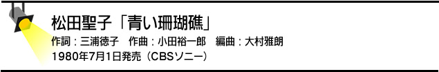 今月のスポットライトは、透明感のある高い歌唱力で数々のヒット曲を生み、80年代を代表するアイドル歌手となった松田聖子の初期の代表曲、「青い珊瑚礁」を取り上げます。